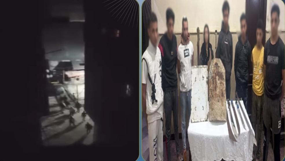 وعقب تقنين الإجراءات، نجحت الأجهزة الأمنية في تحديد وضبط المتهمين الظاهرين بمقطع الفيديو، وعددهم 7 أشخاص وسيدة، لاثنين منهم معلومات جنائية، وجميعهم مقيمون بدائرة القسم. وضُبط بحوزتهم 7 أسلحة بيضاء و2 “صدادة” معدنية، وهي الأدوات المستخدمة في ارتكاب الواقعة.