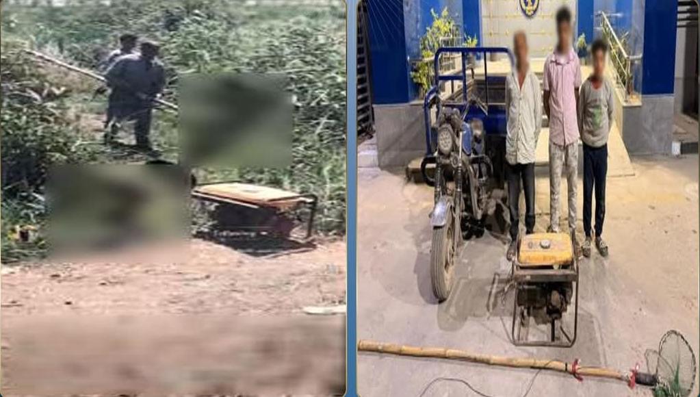 وبإرشاد المتهمين، تم ضبط الأدوات المستخدمة في الجريمة، والتي شملت مركبة “تروسيكل”، ومولد كهرباء، وسنارة موصلة بسلك كهربائي، تُستخدم في صعق الأسماك.