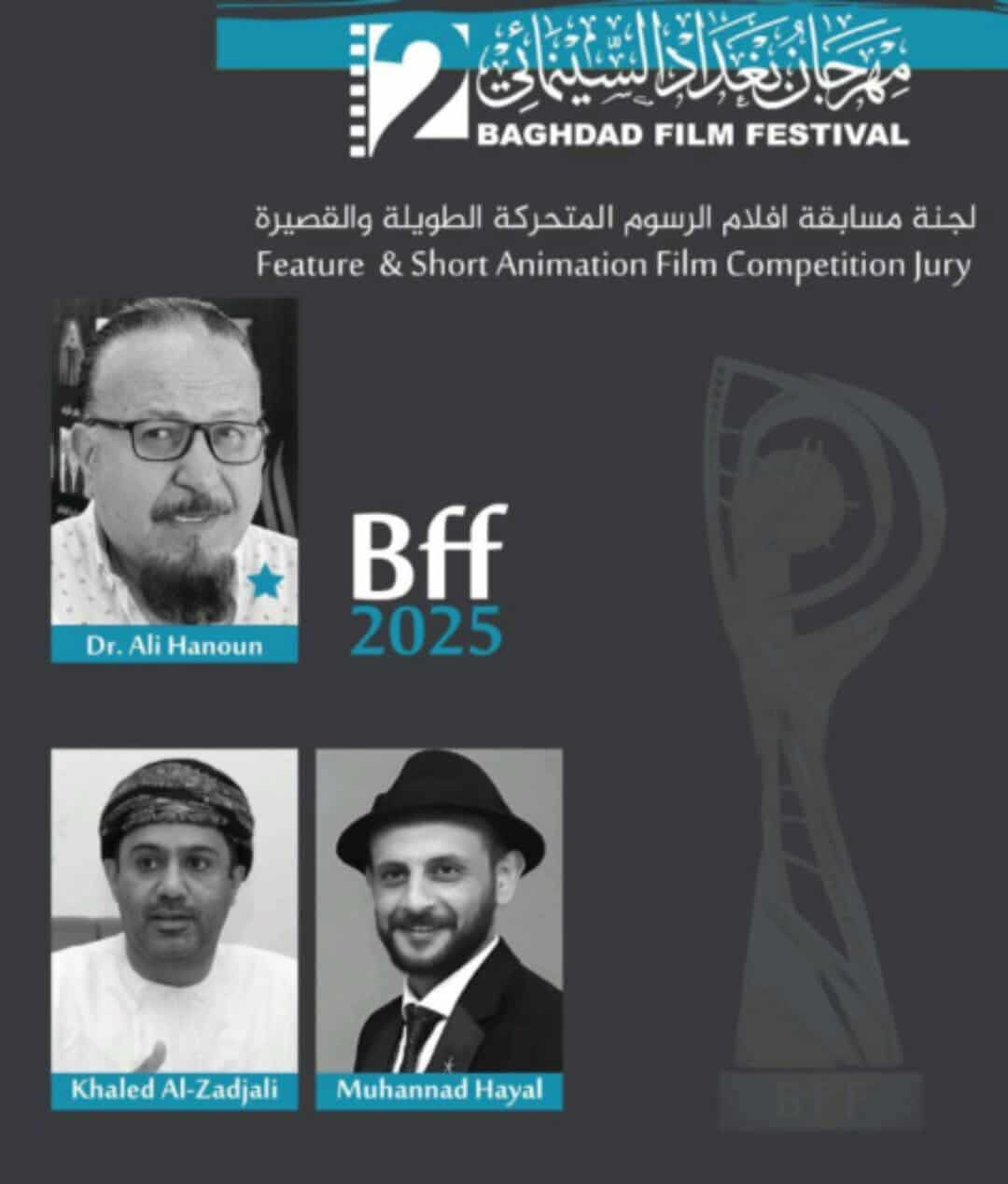 كما تم اختيار الدكتور علي حنون لرئاسة لجنة تحكيم أفلام الأنيميشن، بعضوية المخرج العُماني خالد الزدجالي والمخرج العراقي مهند حيال.