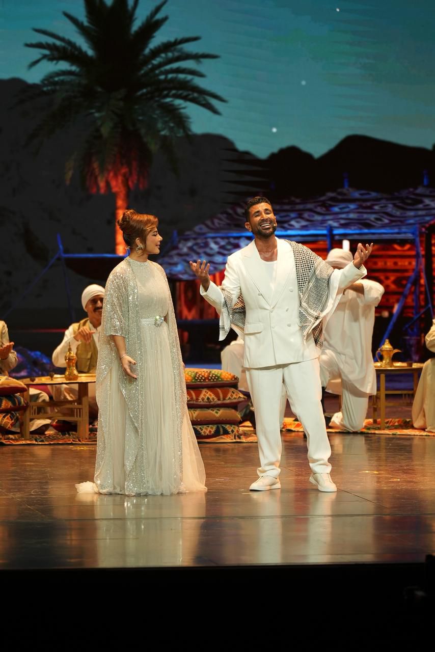 كما أشعل النجمان أصالة وأحمد سعد الأجواء بدويتو “باصين على قدّام” كرسالة أمل وتفاؤل بمستقبل يسوده السلام لمصر والمنطقة.