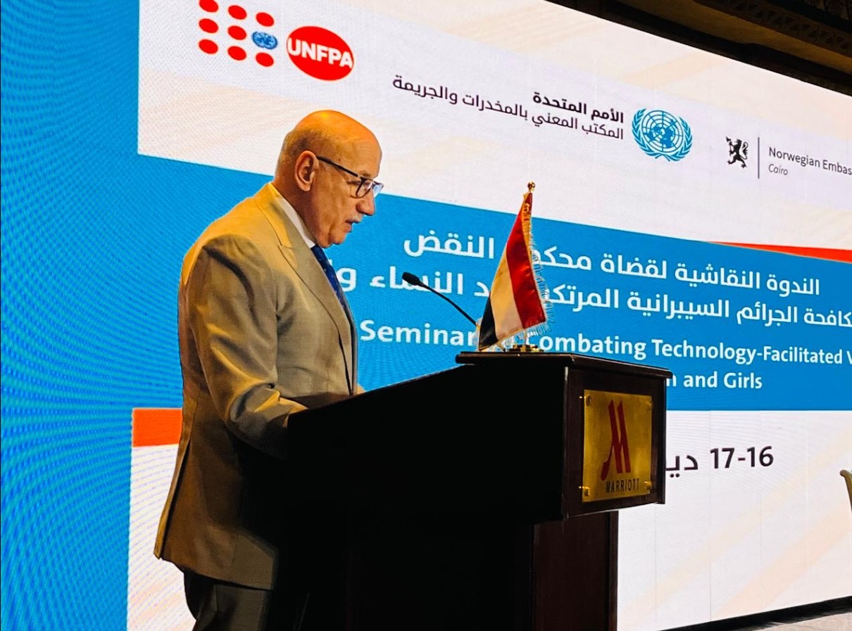 ترأس المستشار عاصم الغايش، رئيس محكمة النقض رئيس مجلس القضاء الأعلى، وفد محكمة النقض المشارك في مؤتمر الأمم المتحدة لمكافحة الجرائم السيبرانية ضد المرأة، الذي نُظم بالتعاون بين مكتب الأمم المتحدة المعني بمكافحة المخدرات والجريمة وسفارة دولة النرويج.
